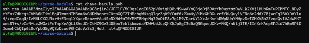 Geradas as chaves, visualize o conteúdo da chave pública represente no arquivo chave-bacula: