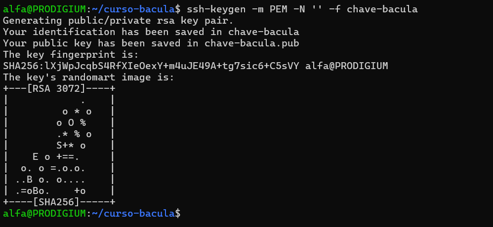 ssh-keygen -m PEM -N '' -f chave-bacula