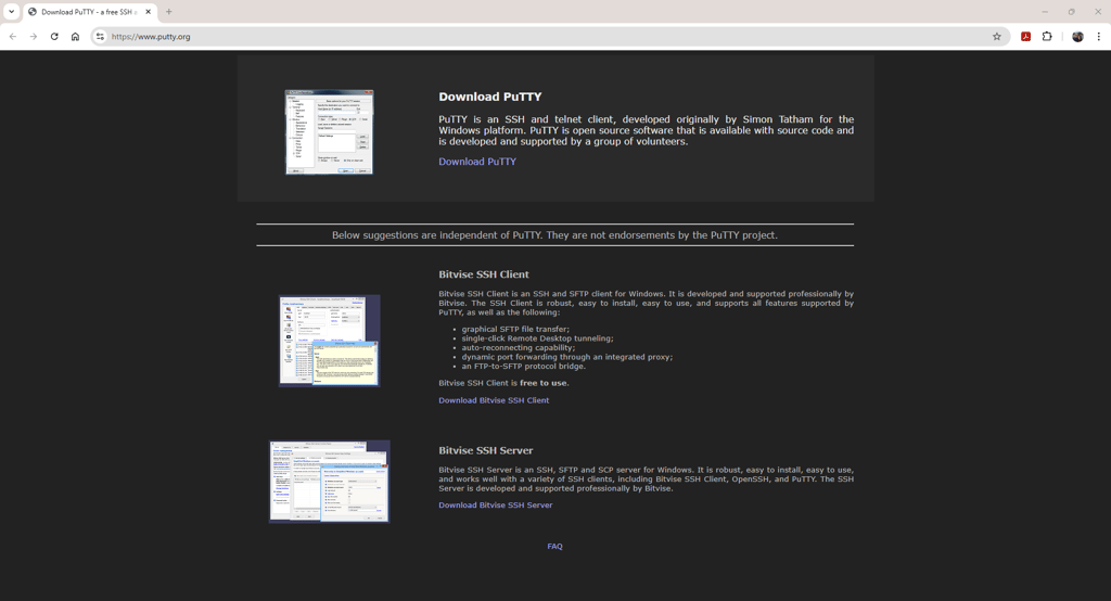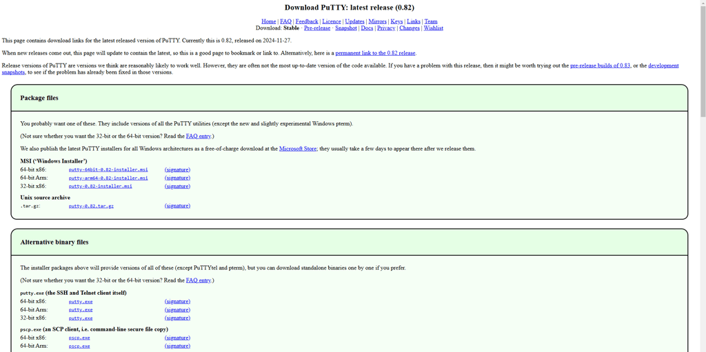 Página de download PuTTY - Fonte: Autor