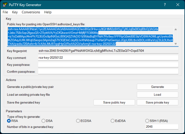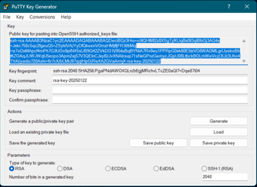 Gerando chave ssh no PuTTYgen - Fonte: Autor