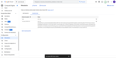 Adicionando chaves SSH no GCP