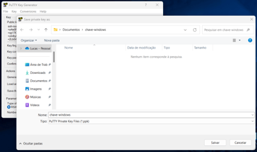 Escolha um local para salvar a chave e clique em Salvar. No exemplo irei nomear como “chave-windows”: