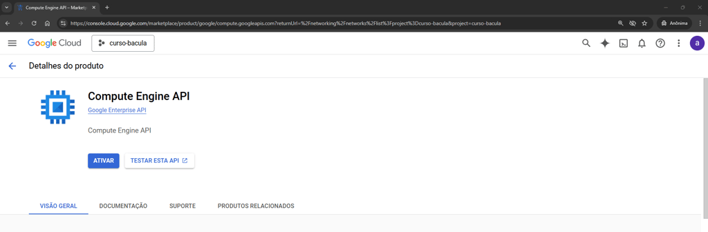 Ativando a Computer Engine API - Fonte: Autor