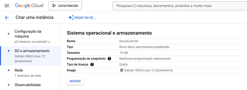 Criação da instância bacula-server