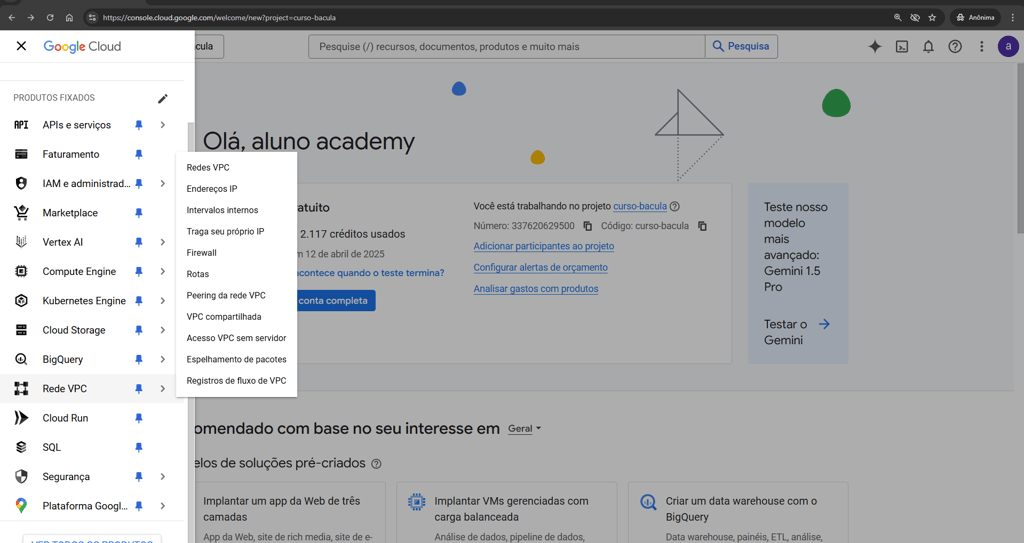 Agora, com sua conta gratuita no Google Cloud Platform (GCP) e seu primeiro projeto configurado, é hora de avançar para a próxima etapa: configurar regras de firewall e criar máquinas virtuais. Essas ações são fundamentais para garantir que seu laboratório na nuvem seja não apenas funcional, mas também seguro contra ameaças cibernéticas. Ao dominar essas configurações, você estará apto a simular ambientes complexos e realistas, essenciais para aprofundar seus conhecimentos e habilidades na área.