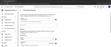 Para nossa regra de firewall iremos definir as seguintes configurações: